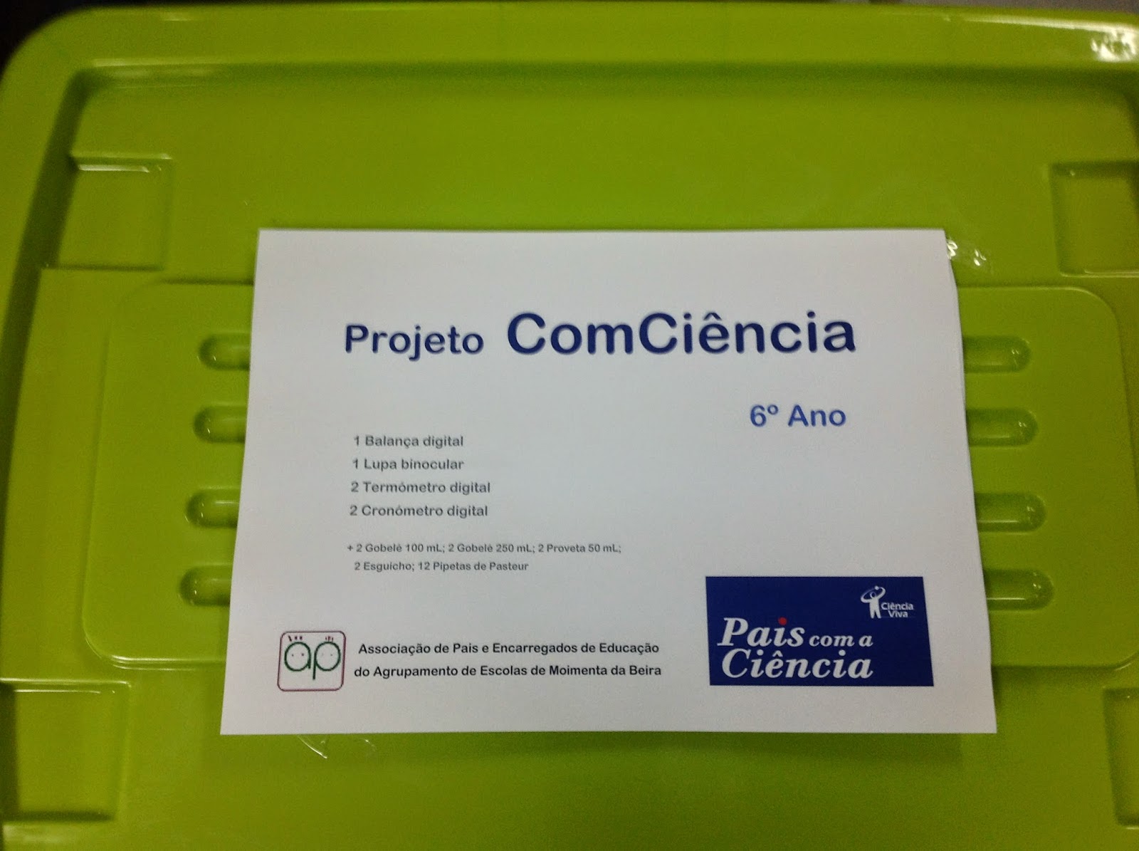 No passado dia 13 de dezembro de 2013, foram entregues, em todas as turmas do 1º Ciclo do Agrupamento de Escolas de Moimenta da Beira, um conjunto de 5 Kits Científicos (Química 1000; Primeiros passos na Ciência; Gerador Eólico; Desafio Elétrico; Forno Solar).